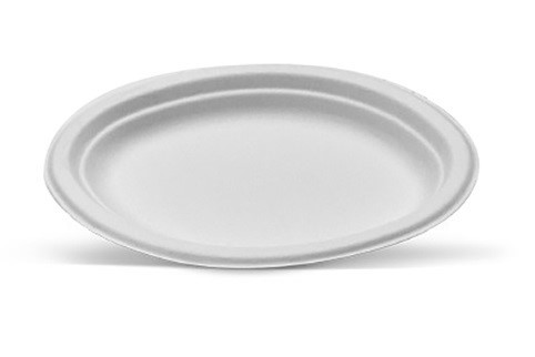 Small white oval plate made from sugarcane bagasse- Very elegant yet sturdy.