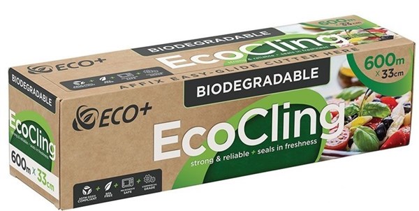 ECO+Cling biodegradable cling film- The strong and clingy cling film comes with an easy-glide cutter bar making food preparation a breeze and the outer packaging box is water resistant so it won't get wet while in busy kitchens