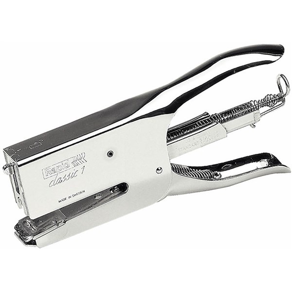 Rapid K1 classic pliers are the worlds most sold plier and the florists favorite | Nice classic design with adjustable anvil for stapling and pinning | Perfect for the post room, shop, home and office | Ideal for sealing padded bags, small cartons and packaging in post rooms | Staples up to 50 sheets of paper (80gsm) | Durable, high quality steel construction | Adjustable anvil for stapling and pinning | Traditional back loading functionality | For 26/6 Rapid Strong and 26/8+ Rapid Superstrong staples | 56mm stapling depth