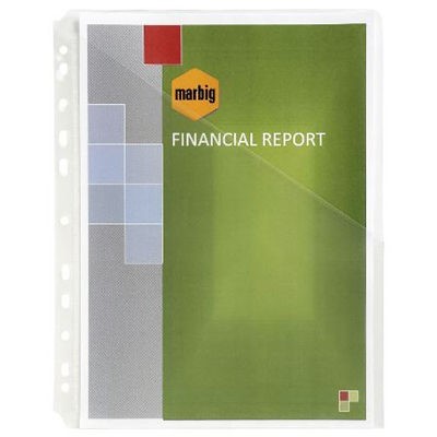 The Marbig sheet protector range is perfect for all presentations and archiving | The pockets resist tearing and provide copysafe protection for documents | Fits all 2,3 and 4 ring binders | Ultra clear finish is sharp and perfect for showcasing documents | Copysafe pockets allow photocopies to be kept for years without reaction to the protector | Reinforced binding edge | Slant opening for quick and easy access | Pack of 10