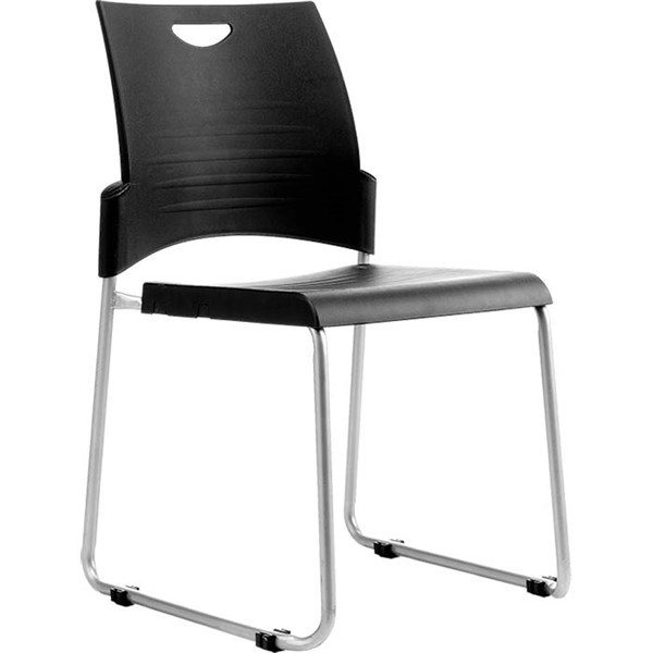 A universal stacking chair with a strong, robust frame and a durable polypropylene seat and back | The Pronto is suitable for a variety of uses; schools, cafeterias and community halls | Stackable and linkable | Quality silver powder coated frame | Hand hold for ease of movement | Tested to ANSI/BIFMA x5.1-2011 General-Purpose Office Chairs | Please note: Free trolley for every 28 Pronto chairs ordered | Due to freight costs, some orders may incur a delivery charge and this will vary depending on the order, particularly in regional areas- Delivery costs can be confirmed at the time of order