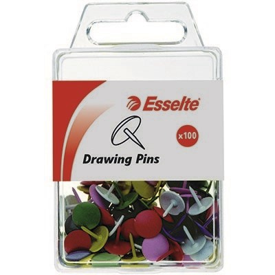 ESSELTE DRAWING PINS ASSORTED PACK 100