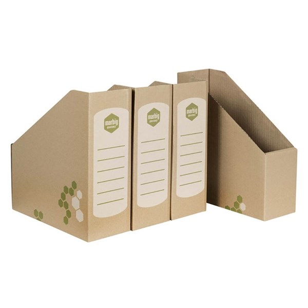 Marbig Magazine Holder | For storing magazines, periodicals, catalogues etc- | Large identification panel on front makes finding your files easy | Economical and durable way to organise your documents | Made of cardboard material with a smooth gloss finish | Supplied flat | Pack of 4