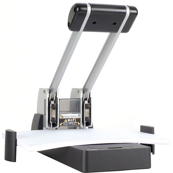 Carl heavy-duty, high capacity drill punches make punching large quantities of paper quick and easy | All punches feature an ergonomic handle for minimal effort and extra comfort | High quality Heavy duty punches are ideal for the office, they easily go through large quantities of paper making them ideal for heavy filing requirements | Reinforced metal structure for stability of perforation | Ergonomic handle for minimal effort and extra comfort | Easy-To-Change punching blade | Easy-To-Change punching support board | Easy-To-Use self-centering paper guide | Storage drawer for replacement parts | 2 hole punch