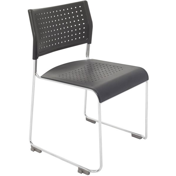 The sleek modern look Rapidline Wimbledon Visitors Chairs are very versatile chair, black plastic perforated back and waterfall seat and chrome steel rod sled base | The chair stacks and links and can be moved with a trolley | Bifma tested and backed by a 3 year warranty | Stacking | Linking | Bifma tested | Due to freight costs, some orders may incur a delivery charge and this will vary depending on the order, particularly in regional areas- Delivery costs can be confirmed at the time of order