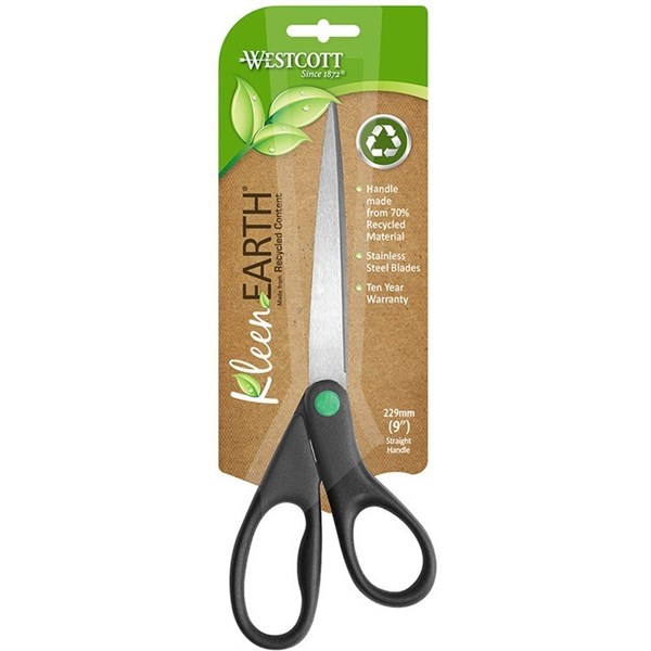 Lightweight and comfortable, multipurpose scissor | Perfect for cutting through layers of paper, foam and poster board | Made from recycled material with a stainless steel blade | The Handle of the Westcott Kleenearth Scissors contain 70 percent recycled plastic and 30 percent post consumer | Handle is suitable for left and right handed use |This product is sold individually- For PACK quantities, please order in multiples of 6
