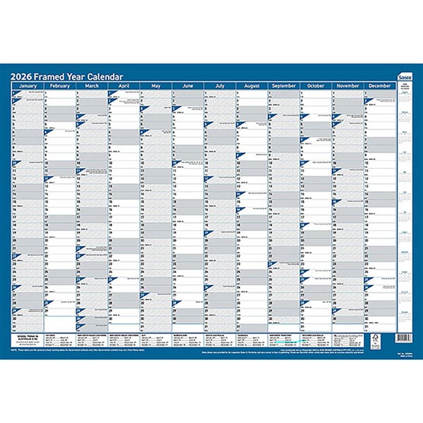 Plan effectively with this year to a view planner | Includes all Australian holidays and important dates, weekends shaded for easy weekly planning | Large, erasable surface for event changes and mistakes to be easily corrected | Each planner is supplied with quality dry erase marker, user friendly stickers and adhesive mounting | Framed for sturdiness and greater durability