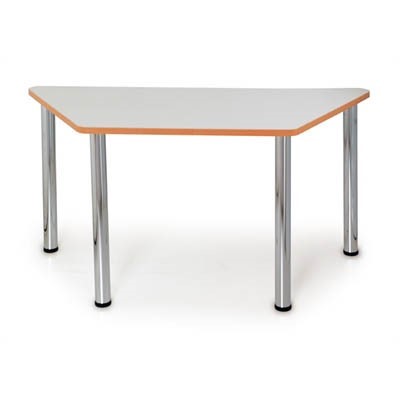 This trapezoid geometric shape table is perfect for creating the optimal layout for your space by combining this table with other geometric shapes in the range- Simply rearrange these tables to suit virtually any conference, meeting or lunch room configuration required | Robust chrome legs add style and durability and can be removed for storage and transport | 25mm tops are parchment with a commercial grade rigid ply edging to take the knocks