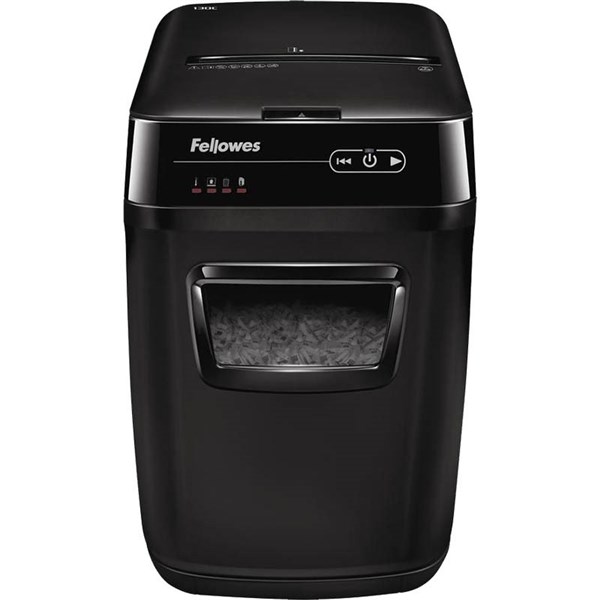 AutoMax 150C Auto Feed Shredder | The Fellowes AutoMax offers a truly walk away shredding experience, automatically shredding stacks of paper with wrinkles, staples, and even paper clips- Simply load the drawer, press start, and walk away | Automatic shredding for personal use and enhanced productivity | 150 sheet automatic and 8 sheet manual shredding capacity | Maximum run time: 12 min on / 25 min off | AccuFeed System provides fast automatic shredding | Auto Reverse stops and reverses paper if a jam occurs | SilentShred offers ultra-quiet performance for shared workspaces | Energy saving Sleep Mode feature shuts down the shredder after 2 minutes of inactivity | Innovative touch screen technology with back-lit LEDs | Due to freight costs, some orders may incur a delivery charge and this will vary depending on the order, particularly in regional areas