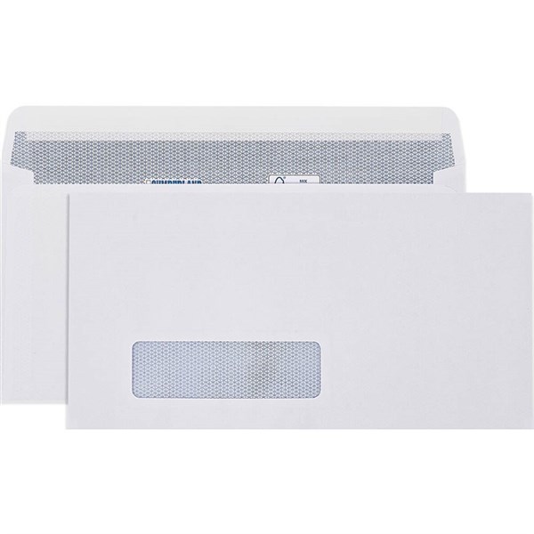 CUMBERLAND DLX ENVELOPES SECRETIVE WALLET WINDOWFACE STRIP SEAL LASER 90GSM 235 X 120MM WHITE BOX 500