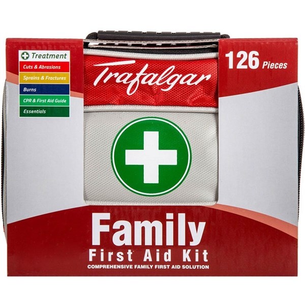 Designed To Cater To Most Emergencies | An Essential At Home Or On Family Holidays! | Treatment: Bleeding, Burns, Fractures And CPR Ideal for an active family lifestyle and is designed to cater to most emergencies | Includes all your first aid essentials and is perfect for the home or stored in the car | Suitable to treats Cuts, Abrasions, Fractures, sprains, Minor Burns and Eye Injury it also includes a step by step First Aid Guide to ensure you administer first aid correctly or until professional help is available, ensuring you are prepared at all times with the essential Family first aid kit | | GENERAL INFORMATION INTENDED PURPOSE | A collection of equipment for the initial treatment of minor to moderate injuries | KIT CONTAINS | 15 x Adhesive Mini Strips | 15 x Adhesive Round Plasters | 1 x Adhesive Square Plaster | 40 x Adhesive Strips | 1 x Adhesive Tape 1.25cm | 1 x Antiseptic Cream Sachet | 1 x Bandage Conforming 5cm | 1 x Bandage Conforming 7.5cm | 1 x Burnaid Sachet | 20 x Cotton Buds 1 x CPR Shield | 2 x Disposable Latex Gloves | 1 x Eye Pad | 1 x Fabric Dressing Strip | 1 x First Aid Guide | 1 x Gauze Swab 5cm 2pc | 1 x Gauze Swab 7.5cm 2pc | 1 x Island Dressing | 1 x Non-Adherent Pad | 1 x Resealable Bag 10 x Safety Pins | 2 x Saline Pods | 1 x Scissors | 1 x Splinter Probe | 1 x Triangular Bandage | 1 x Tweezers | 1 x Wound Dressing | 2 x Wound Wipes