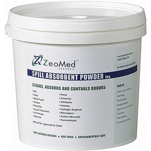 ZeoMed clean-up powder | ZeoMed is the ideal solution for locations with spill risks ranging from biohazard and chemical spills to general slip and fall hazards, such as cooking oils or detergents | Suitable for laboratories, supermarkets, shopping centres and restaurants | Quick acting, natural absorbent of toxic and noxious odours | 100% natural mineral and ecologically safe | Non-toxic | Absorbs excess moisture helping coagulate spills | No shelf life - powder does not expire
