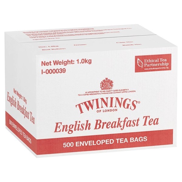 TWININGS ENGLISH BREAKFAST ENVELOPE TEA BAGS CARTON 500