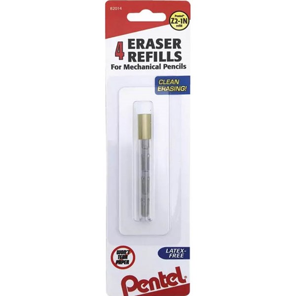 Pentel Z2-1 refill erasers | White, non-abrasive, refill erasers | Three per tube | Refill eraser for the following mechanical pencils: Pentel Graph Gear 500, Pentel Graph Gear 1000, Pentel Flex-Fit, Pentel Sharp, Pentel Sliding Sleeve Sharp, Pentel EnerGize, Pentel Sensi-Grip, Pentel Classic Deluxe, Pentel Client, Pentel Pro-Am, Pentel Sharplet-2 | Tube of 3