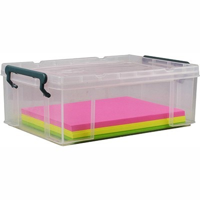 Italplast Stacka Storage Box with Lid | Strong and sturdy plastic construction | Designed to stack to offer multiple combinations of a modular storage system | Complete with handles to securely close lid to box | Carry handles for easy mobility | Made from transparent material for easy viewing of contents | Made from food contact grade polypropylene material | Designed for multi storage use applications - office, kitchen, warehouse | 100% Australian Made