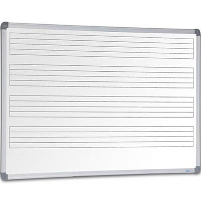 Permanently ruled with 4 music staves | Magnetic surface can be wall mounted | Dry wipe surface | Pen tray included | Supplied with red, blue and black whiteboard markers
