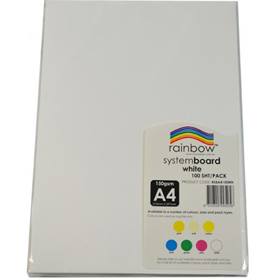 RAINBOW SYSTEM BOARD 150GSM A4 WHITE PACK 100