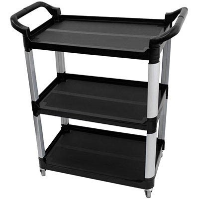 Compass Compact 3 Shelf Utility Cart is all plastic construction and is easy to clean | Featuring 3 tiers for you to carry multiple objects | This trolley is a great accessory for general cleaning, office or warehouse use