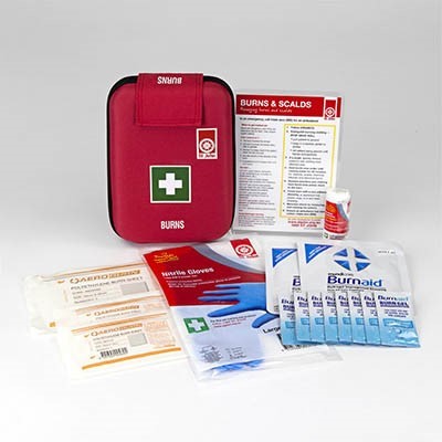 The St John Burn Injuries Module enables the first aider to respond effectively in an emergency in treating a burn injury | Product tested by 10,000 St John volunteers each year | KIT CONTAINS | 2 x Burns Instruction Card | 3 x 1020 Bandage Conforming Light 75mm | 2 x 5145 Burnaid Dressing 100 x 100mm | 1 x 305402L Gloves Nitrile Large pair (disposable) | 1 x Small 2103 Poly sheet 100 x 100mm | 1 x Medium 2102 Poly sheet 100 x 200mm | 1 x Large 2101 Poly sheet 610 x 920mm | 8 x 5140 Burnaid Sachet Gel