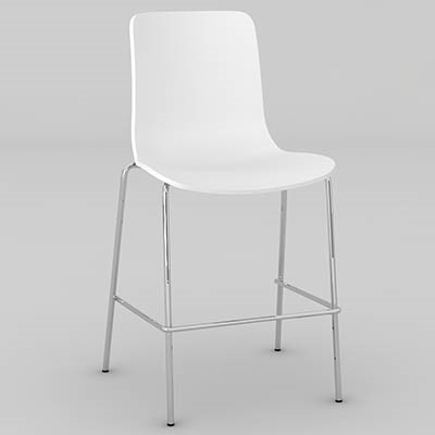 Dal Acti bar stool, with clean lines and a back designed for flex and movement | The Acti low stool is well suited to lower height benches | Model Active flex shell | Chrome stool frame with foot rail | Stackable