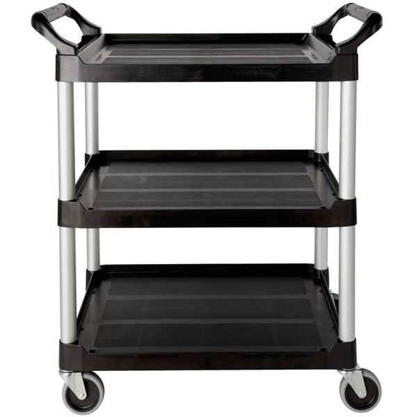 The Rubbermaid Commercial Utility Cart, 3 Shelf, is a versatile, durable cart that can support up to 90kg | The Rubbermaid Commercial Utility Cart is a versatile, durable service cart able to perform a wide variety of tasks | This rolling utility cart can support up to 90kg and features easy-to-clean smooth surfaces, 100mm swivel castors for easy mobility, and user-friendly easy to grip handles | Easy to clean surfaces | 100mm swivel castors for mobility | Easy grip handles
