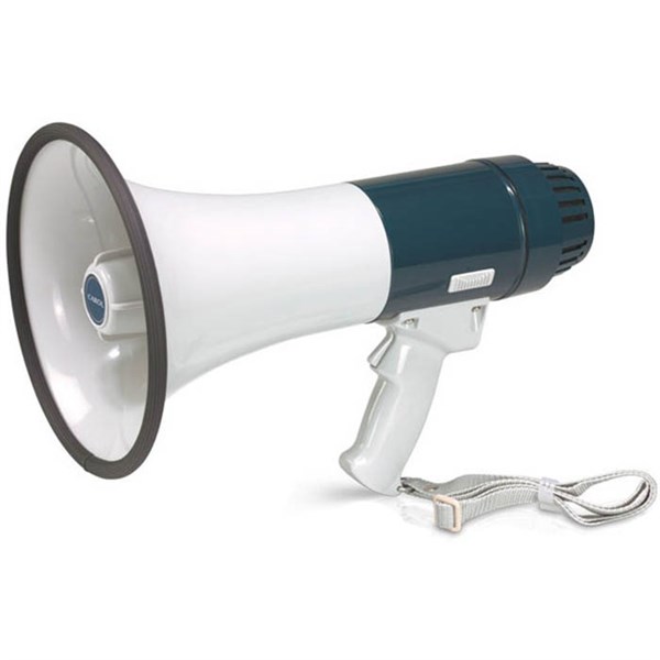 - | Product Specifications | Sound Output-20W | Range-50 100m | Batteries-Standard D-cell | Modes-Voice, siren, whistle, foghorn | Use-Workplace safety, emergencies