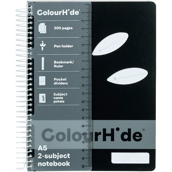 COLOURHIDE 2-SUBJECT NOTEBOOK 300 PAGE A5 BLACK