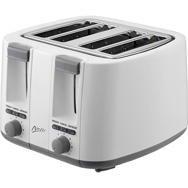 Sleek, modern 4 slice toaster with 7 setting browning dial | Wide toasting slots are ready to receive your favourite breads while hi lift lever allows for easy retrieval of your toasty treat | 7 setting browning dial | Reheat, defrost and cancel buttons | High lift lever | Wide toasting slots | Removable crumb tray