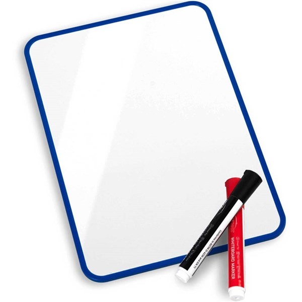 Save paper and allow students to practice skills with these handy little whiteboards | Works perfectly with our range of magnetic letters and numbers as well as our other fun and engaging whiteboard accessories | Double-sided, giving you twice the working area | Compatible with dry erase markers, wiping clean easily | A4 sized lightweight magnetic whiteboard, navy blue frame