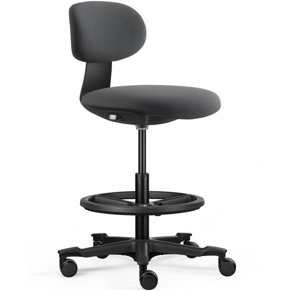 The YOYO Stool is a height-adjustable sit-stand chair- The moulded foam seat and back and the nylon base with castors ensure user comfort and easy mobility | Its innovative design and clear simple style make it the perfect addition to the modern office environment | Height adjustable sit-stand chair | Backrest & Seat Made With Moulded Foam | Gabriel - Mozart FC3103 Dark Grey Fabric Finish | 323W Wire-Control Height Adjustable Mechanism | Black Nylon Drafting Ring - 445mm DIA | XieQiang Gas Lift 200/0, Class 4 | Black Nylon 5 Star Base With Top Grip Treds | 60/25 PU Castors | Backed by a 10 Years warranty