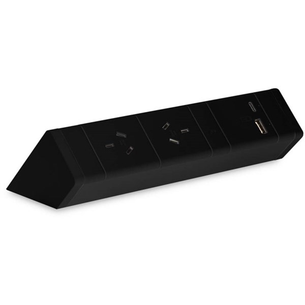 Athena Rail Kit - 2 GPO + 1 USB A + 1 USB C | The smart solution for powering your workstation, while preventing cluttered cables and trip hazards on the floor | With a choice of colours and connection inputs, we have the perfect soft-wiring option for your workstation, executive office and meeting rooms- Let us help keep you connected | 2 x 10AMP Auto Switched Socket Outlet, 1 x USB C Outlet, 1 x USB A Outlet | Includes tag lead D, splitter & desk clamps for attaching to desk | Installing Athena is simple, with snap-in clamps and self-fastening paddles for top-sided mounting | Available in black or white | 2 year warranty