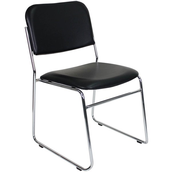 The Rapidline Evo Visitor Chair is the perfect choice for visitor and reception areas, with a comfortable upholstered black fabric or PU back rest and seat pan, paired with a chrome sled base and button feet | The EVO Chair has a Fully welded chrome sled base with button feet | Fully upholstered back rest & seat pan | Seat and backs available in black fabric or PU | Stackable up to 5 chairs high, stacks 20 high on chair trolley | Overall size of 480mm W x 500mm D x 840mm H | Seat size of 440mm W x 440mm D x 460mm H | Weight rating of 110kg | 3 year warranty