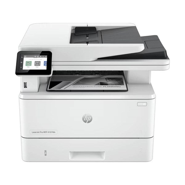 The HP LaserJet Pro MFP 4101fdn is a high-speed monochrome multifunction printer that delivers print, copy, scan and fax capabilities in a single reliable device | Designed for busy offices and work-teams, it prints at speeds of up to 42 pages per minute and includes automatic duplex printing, a 50-sheet automatic document feeder and a 2.7-inch colour touchscreen for easy navigation | With wired Gigabit Ethernet connectivity, enterprise-grade security via HP Wolf Pro Security, and a robust duty cycle of up to 80,000 pages per month, it s built to keep business workflows moving efficiently