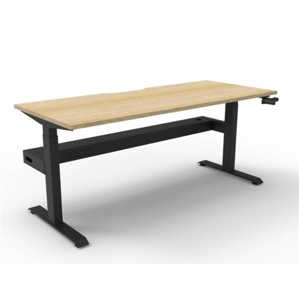 RAPIDLINE BOOST CRANK SINGLE SIDED WORKSTATION WITH CABLE TRAY 1200 X 750 D X 705MM NATURAL OAK TOP AND BLACK SATIN FRAME
