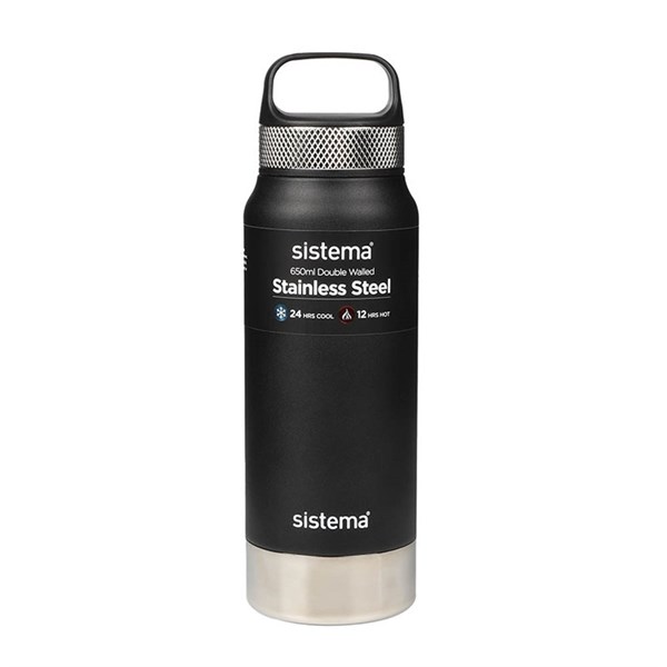 The Sistema 650ml stainless steel drink bottle has been designed with double walled vacuum insulation to encapsulate your beverage temperature for longer