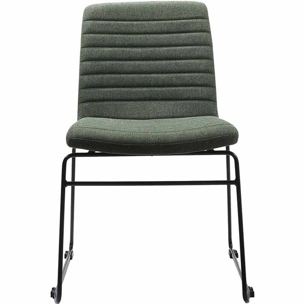 This versatile Pixel Sled Base Chair features a comfortable upholstered seat and back, perfect for short-term seating or casual collaboration | The sleek black sled base adds a touch of sophistication, while the linking ability allows for flexible seating arrangements | Breakout & Visitor Chair | Olive Fabric Upholstery